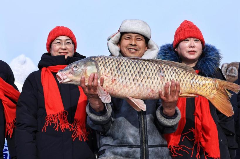 1月23日,作为黑龙江省“冷水鱼·冬捕季”分会场之一,黑龙江省同江市在街津口赫哲族乡修恩湖畔举行冬捕活动。本次活动融合民族渔猎、民俗体育等内容,让人们沉浸式领略冰雪盛景,感受赫哲民俗文化魅力。 新华社发(刘万平 摄)