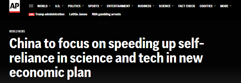 美联社报道称,近年来,中国的产业政策成功促进了电动汽车与风电、光伏产业的迅猛发展,目前正将重心延伸至机器人及人工智能领域。报道援引分析人士的话说,此次公报强调科技自立自强水平要实现大幅提高,这反映出中国在应对外部压力时已具备了更强的韧性。